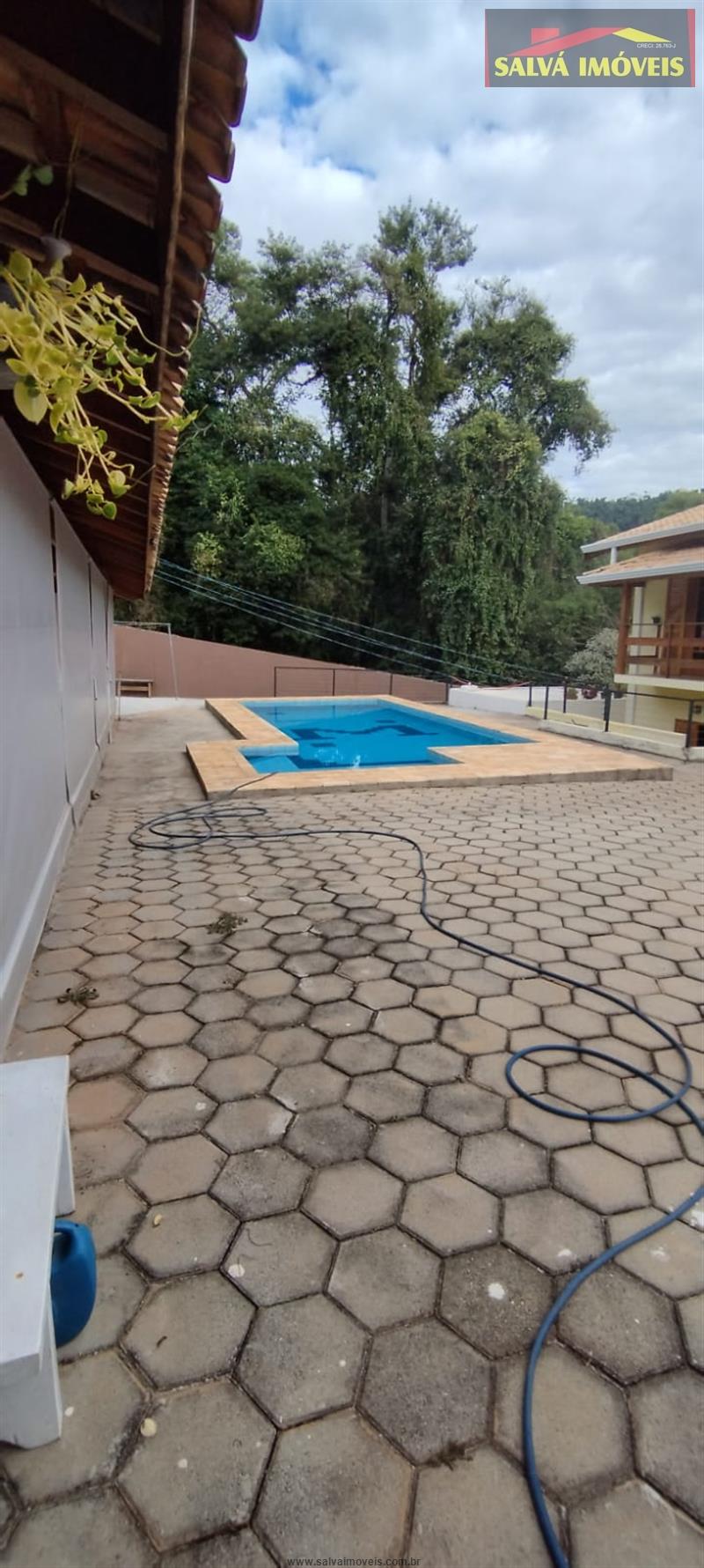 Chácara para residir ou lazer, próximo ao centro do Bairro do Portão, com 1.000,00m² de terreno, aproximadamente 300,00mts² de construção, Sobrado com 1 suíte com closet, mais 2 quartos e 1 banheiro no piso superior. Piso térreo com 1 quarto, 1 banheiro, despensa, cozinha, sala de jantar e sala de estar amplos e arejados, varanda na sala. Garagem coberta para 2 carros e descoberta para mais 10 carros aproximadamente. Lavanderia externa ampla. Área de lazer com piscina em alvenaria e azulejos medindo 3,5 x 8 mts mais a prainha, profundidade 1,40 à 1,60mts, com aquecimento solar. Espaço da churrasqueira equipado com fogão a lenha, forno de pizza e forno a lenha, mesa de bilhar e de pebolim. Aquecimento da casa com boiler em todos os cômodos internos, energia fotovoltaica gerando em média 600 kwh por mês. Espaço na frente para um pomar, horta. Toda murada com muro alto, portões em lambril automatizado, com vídeo porteiro no portão social. Água SAAE em toda área de fora da casa e na parte interna da casa água de poço semi artesiano. Usucapião em fase final.