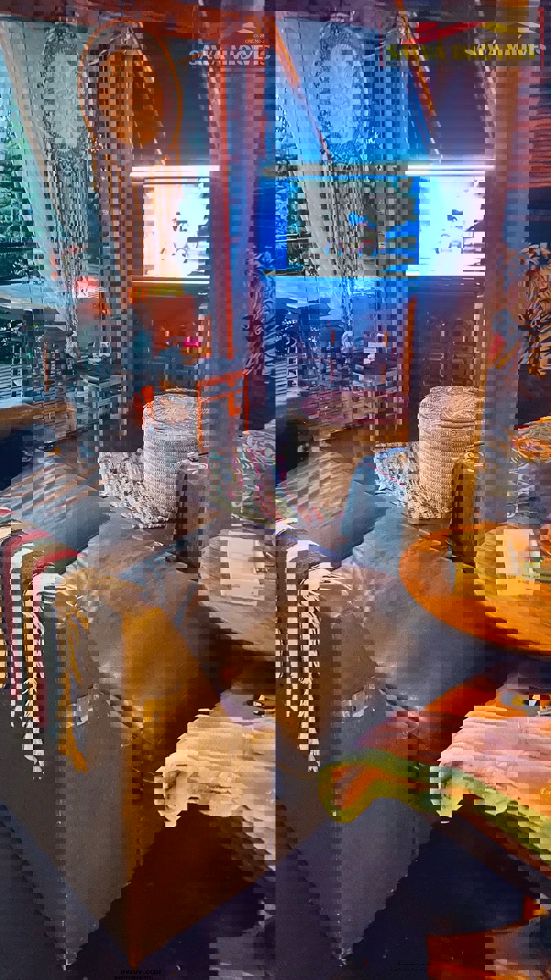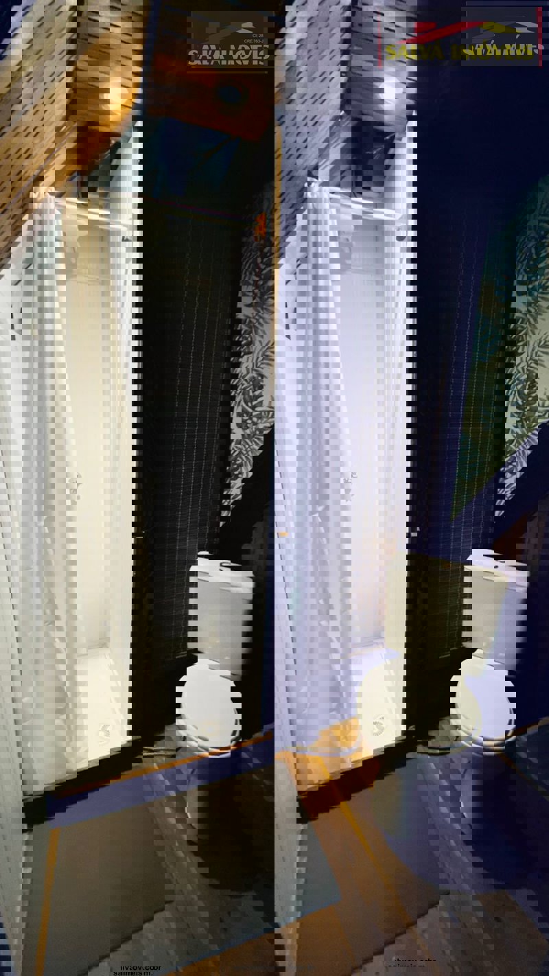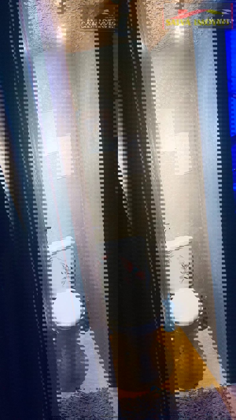 O imóvel dispõe de uma torre de banheiros na lateral de fora (3) + 1 banheiro interno (4 no total) deixando o interior do chalé imenso... tem um deck na parte da frente e outro para o quintal gramado de traz.