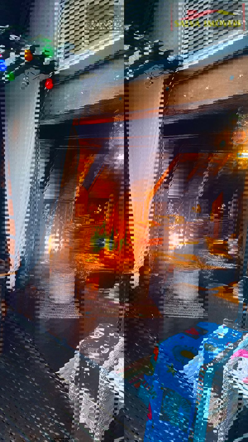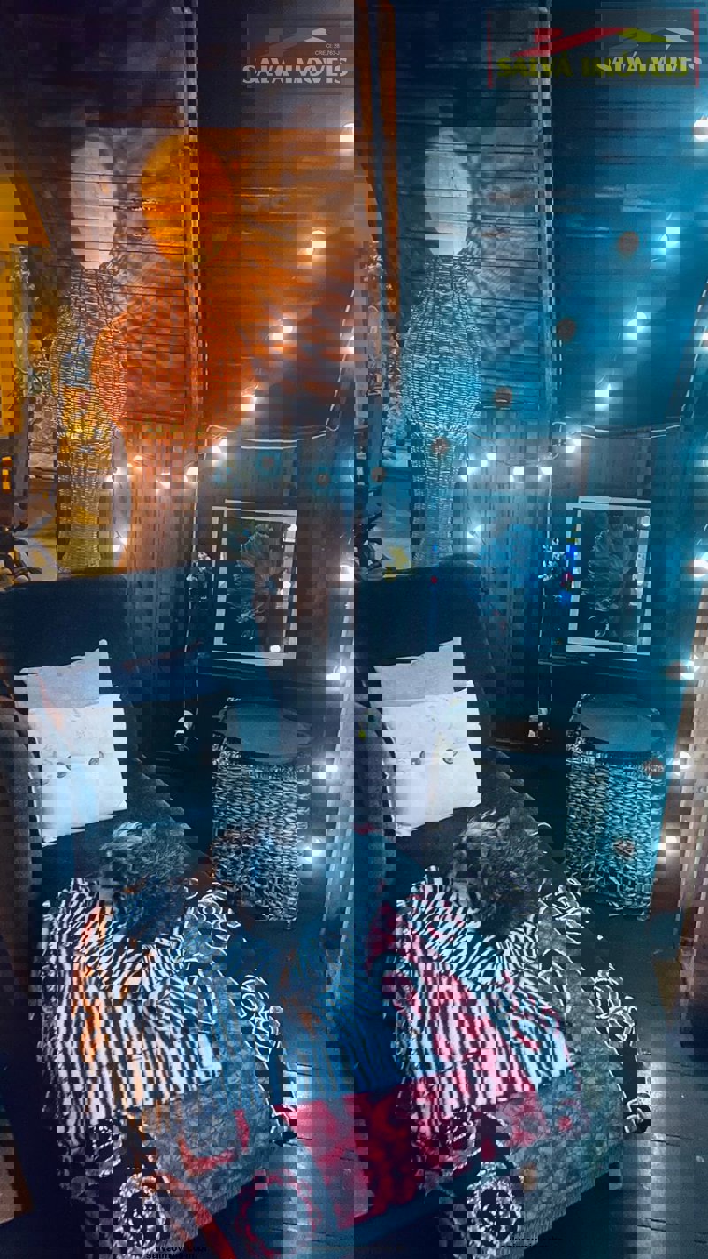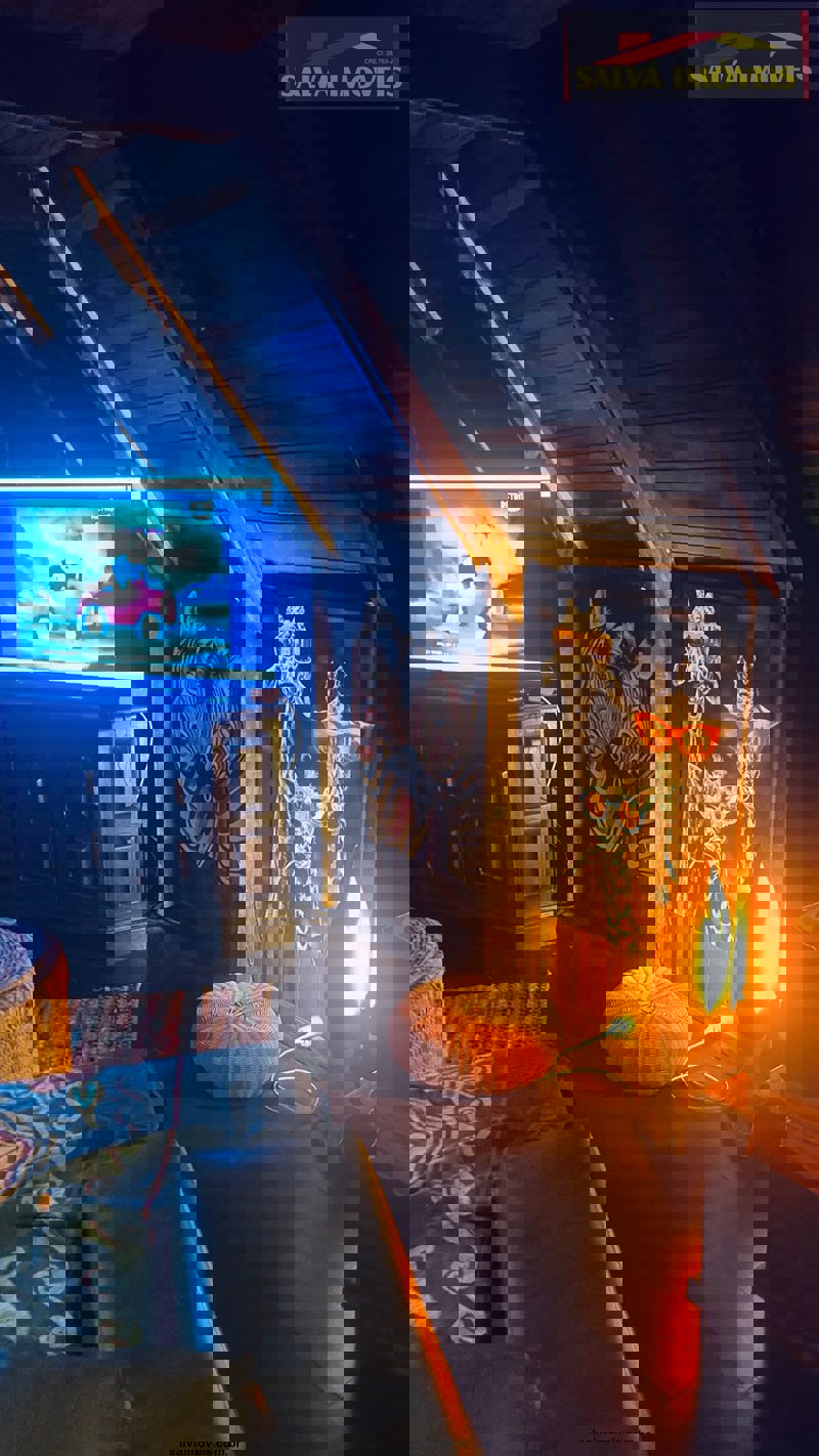 O chalé é casado da casa e jardim...totalmente mudado ou seja, fora do normal ou padrão, mede 100 metros quadrados no madeiramento embuia.