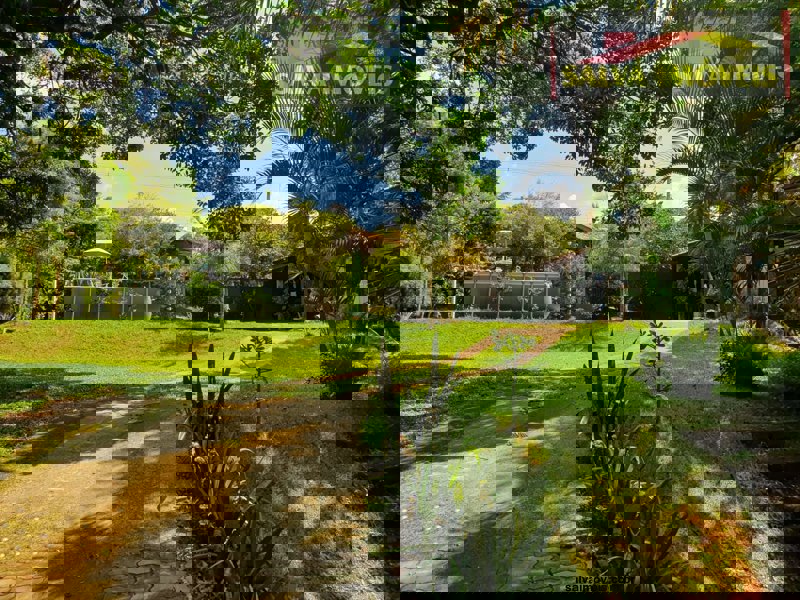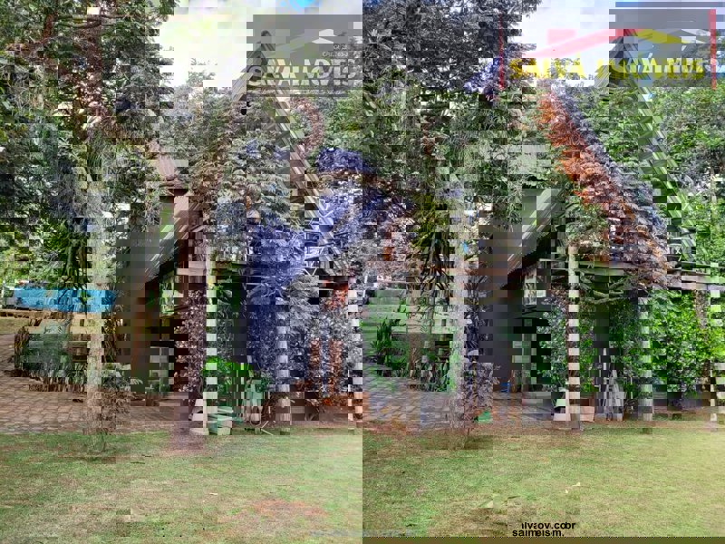 Possui piscina de 17.200 litros com deck suspenso com casa de máquinas, tomadas, chuveiro com ducha etc...tem algumas plantas exóticas, duas araucárias, coqueiros, árvores frutíferas, jacarandas e está todo gramado!