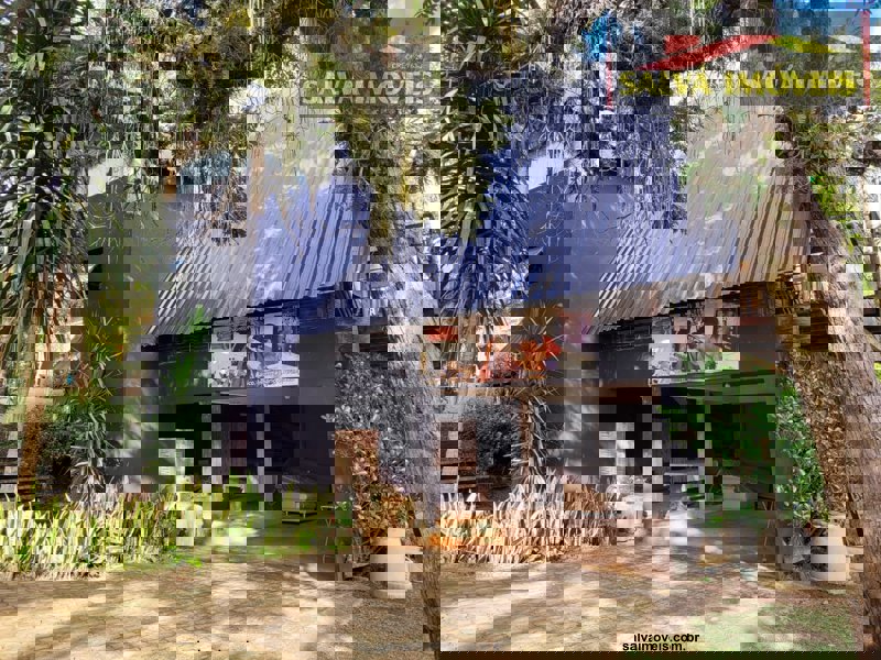 DETALHE DO IMÓVEL: O chalé foi construído em cima de um talude, com uma grande garagem e mais dois cômodos em baixo que cabem de 3 a 10 pessoas...